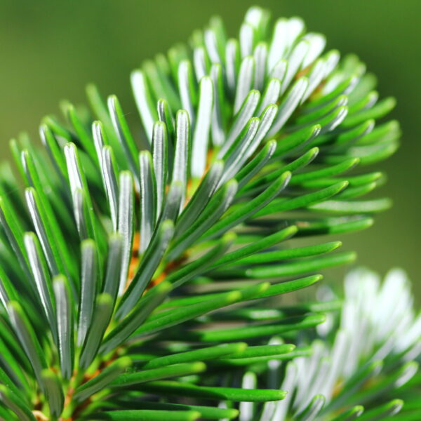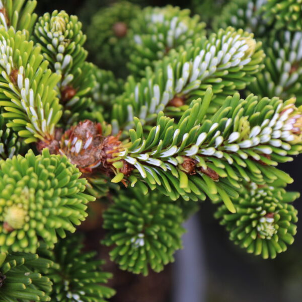 Beautiful, dark-green needles are accented by prominent silver-white stomatal bands. Needles are arranged densely on this dwarf fir, making some of the silver visible from all angles. A spectacular slow-growing fir that is incredibly handsome.