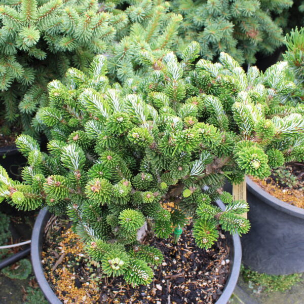 Categories: Dwarf, Dwarf Conifers, Firs Grafted On Abies Firma, Globose, Green, Green Conifers, Other Fir Species, Our Plants, Zone 7, Zone 8, Zone 9